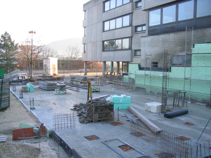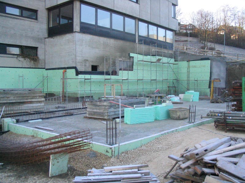 Stahlbetonbau mit Sichtbetonwänden und Flachdecken